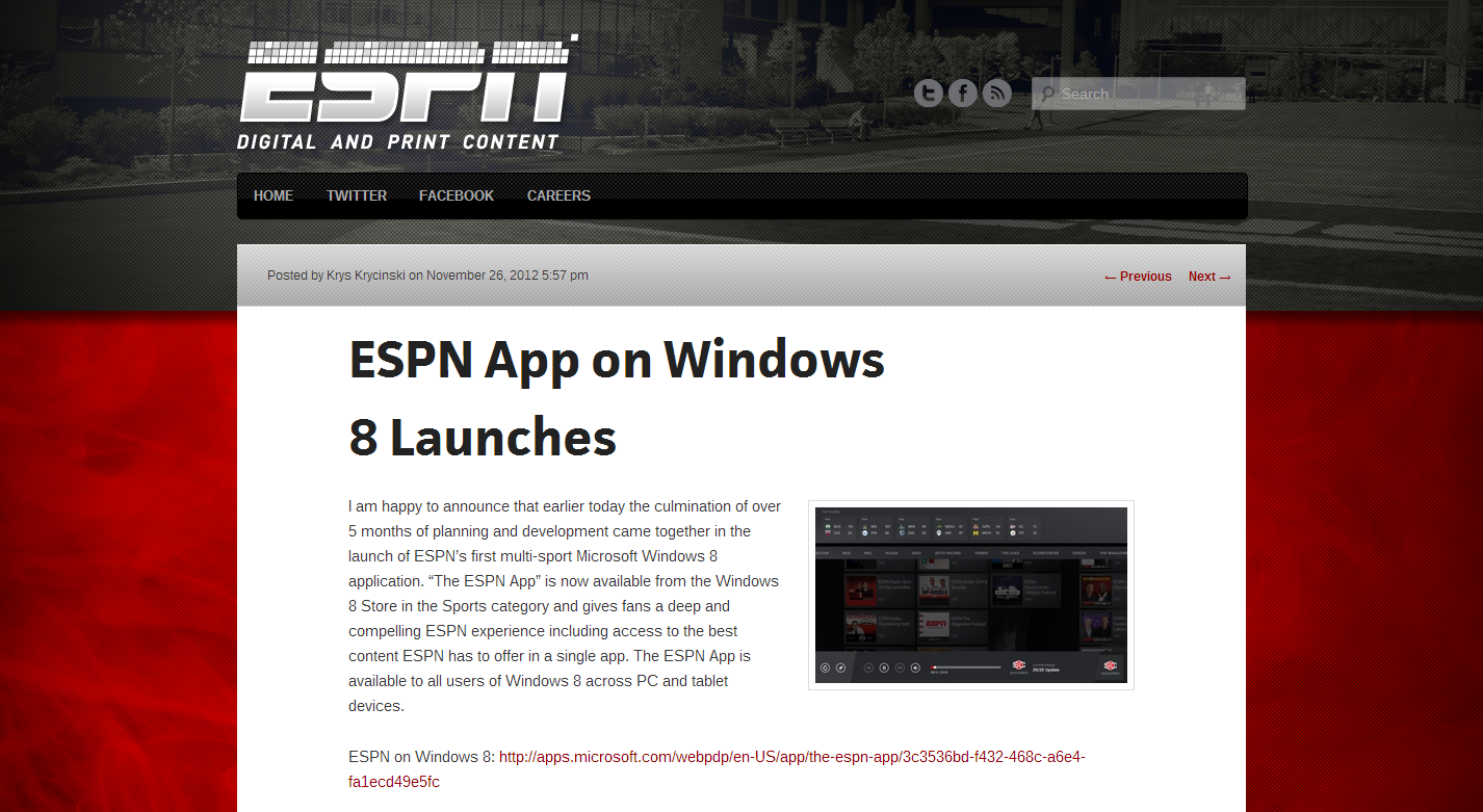 product.espn.comI was contracted by Wordpress VIP to create a Wordpress template for this design by ESPN.