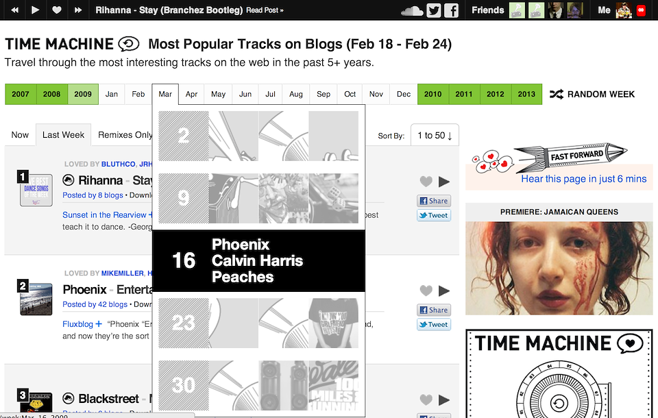 hypem.com/popular/lastweekAllows the user to go back and browse 7 years of music on the Hype Machine.