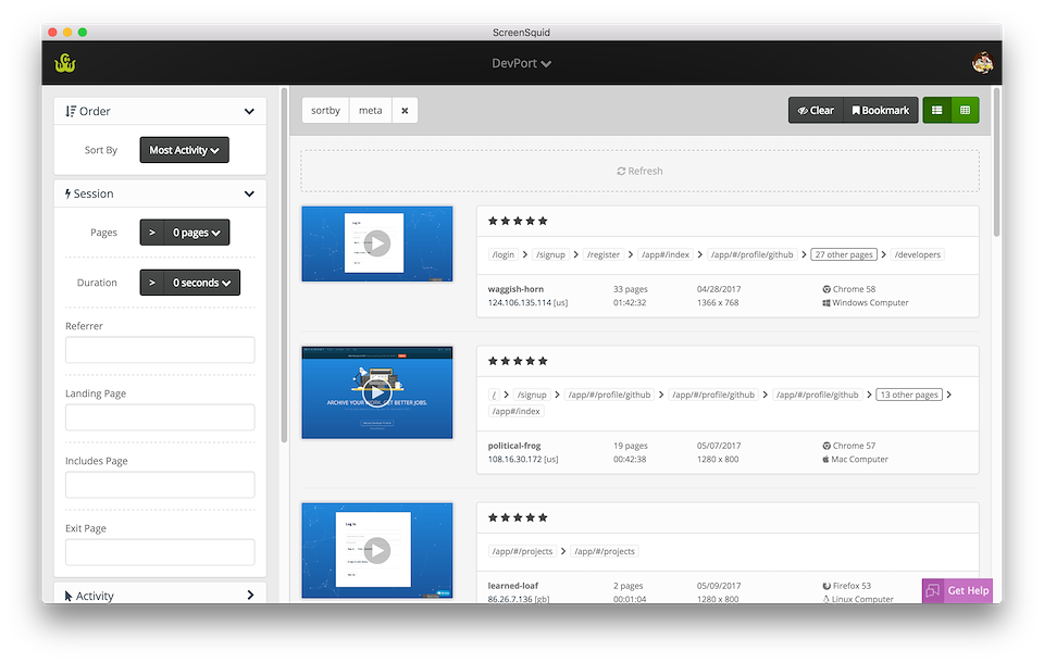 ScreenSquid records the screen of every individual visitor as they use your site.