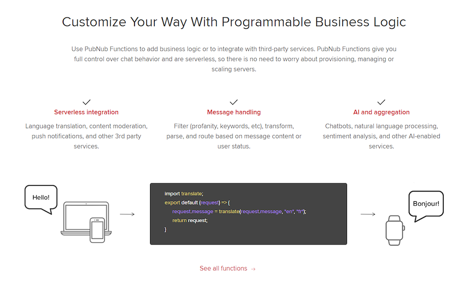 Lead front-end development and launch integrations for PubNub’s serverless offering called PubNub Functions.